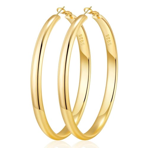 These elegant gold hoop earrings offer a timeless design, perfect for adding a touch of sophistication to any outfit.